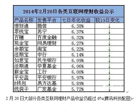 如馬年春節(jié)前各類互聯(lián)網金融理財產品收益率上漲。1月26日,微信理財7天年化收益率達7.902%。余額寶7日年化收益率在6.4%-6.45%之間。春節(jié)后這種增長態(tài)勢未能持續(xù),但從2月4日到2月7日,余額寶7日年化收益率依然在6.04%-6.09%之間。